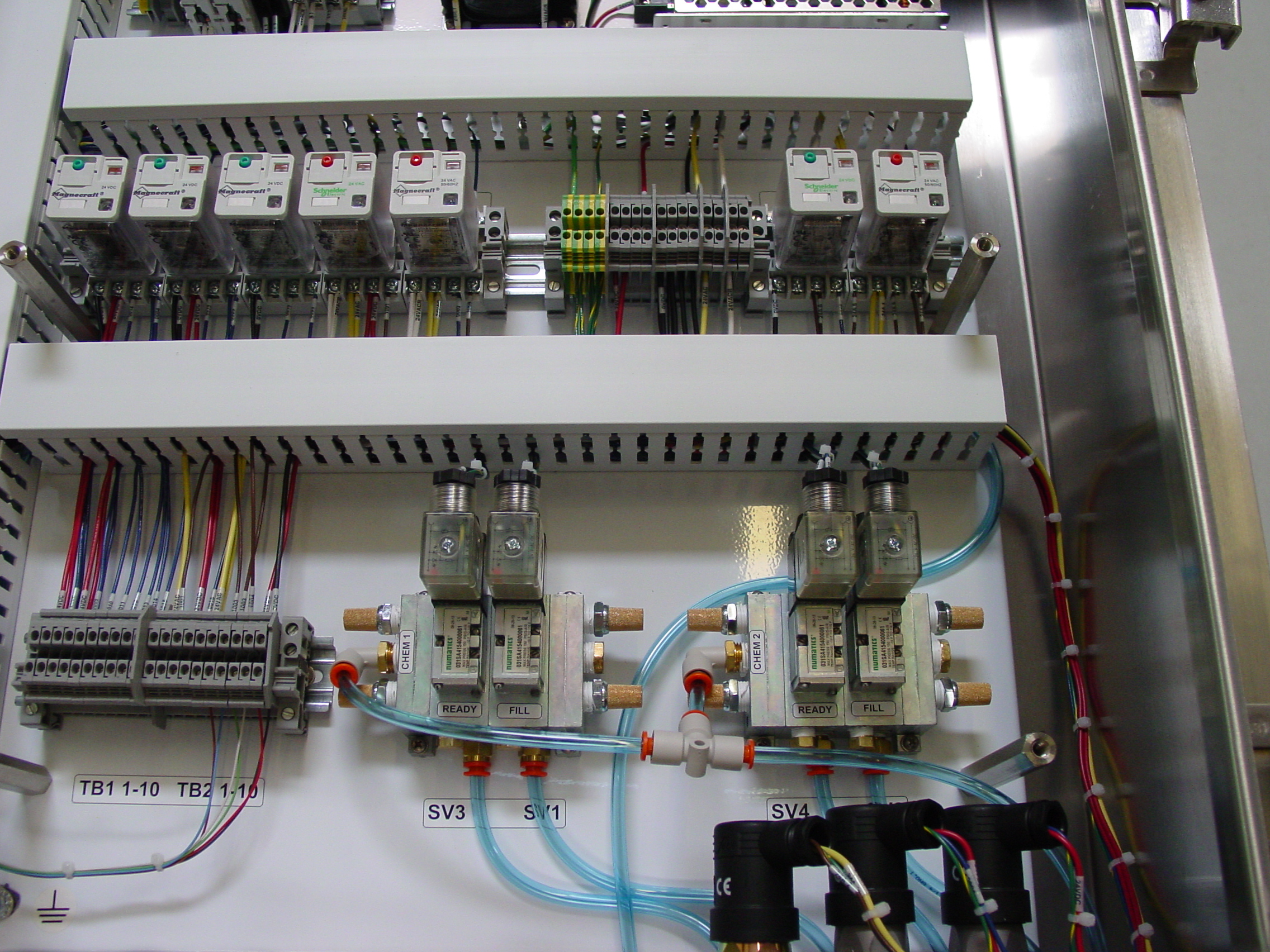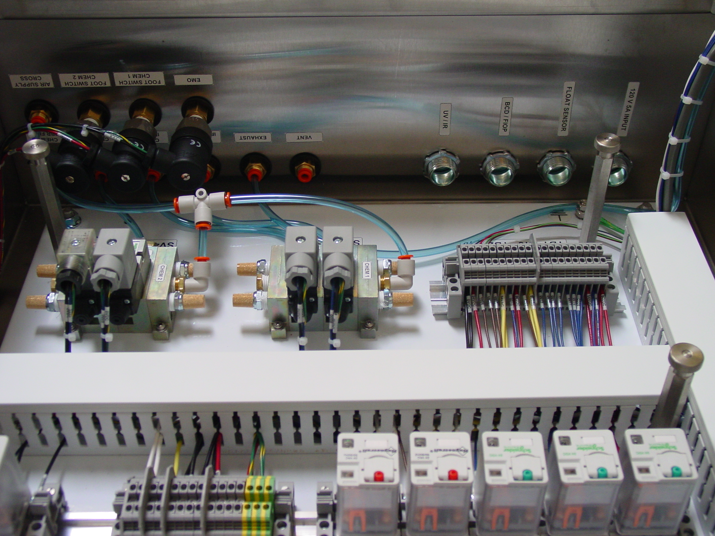 ISI worked with Piper Plastics to design and supply Electrical-Pneumatic Panel Assemblies for a particular solvent hood application. This effort included a 3D CAD design & Electrical Schematic signoff with the end customer prior to procuring parts, fabricating, assembling and testing the panel. A complete documentation package was provided, including mechanical drawings, electrical schematics, and a comprehensive Bill of Materials showing UL/CSA compliance for all components chosen. Piper Plastics then integrated this panel into their entire solvent hood system.